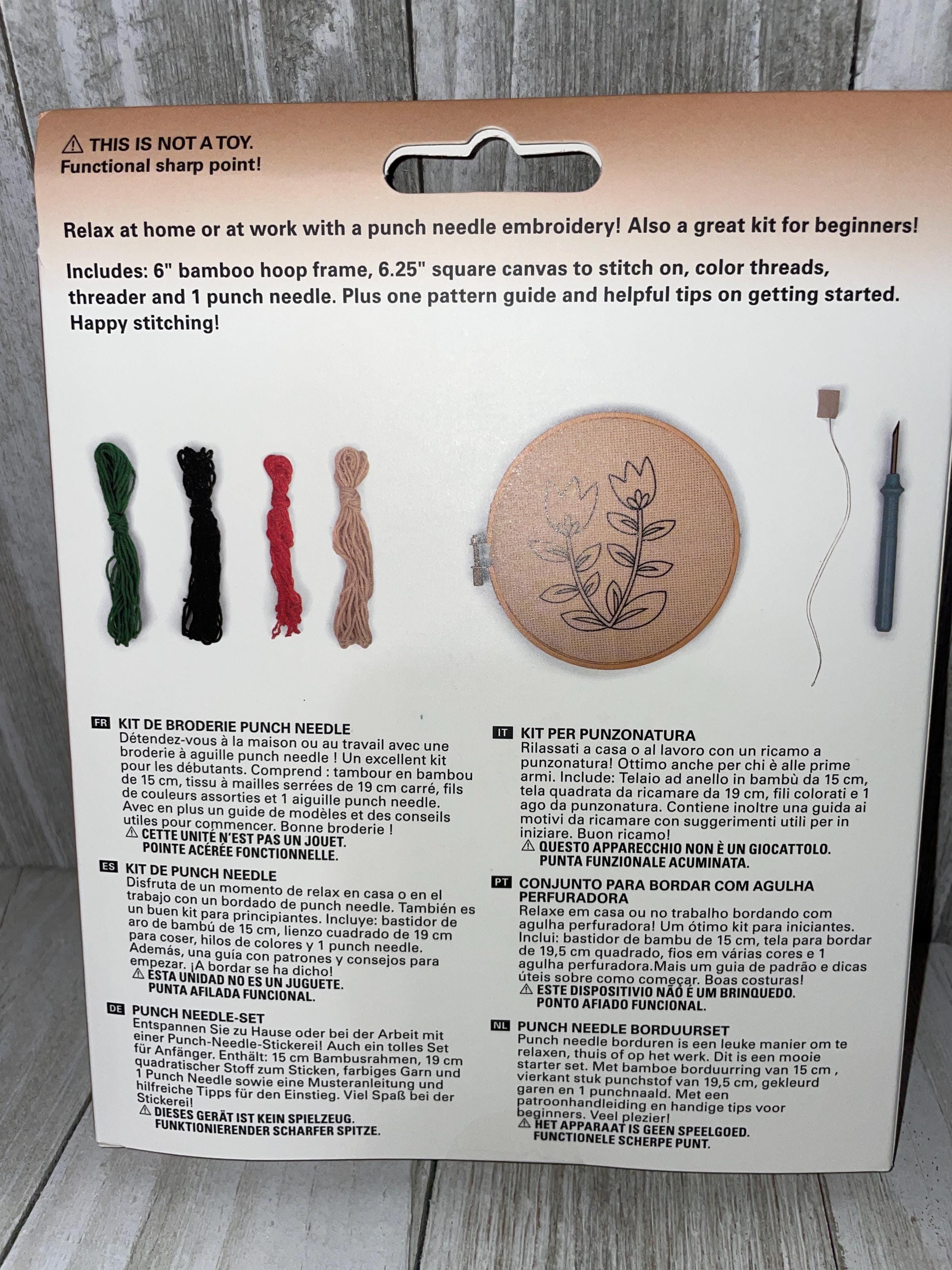 Interested in trying your hand at Punch Needle? This is the kit for you, everything is included to make a small project. Perfect for beginner classes too. Includes: 6" bamboo hoop frame, 6.25" square of canvas, yarn, punch needle, threader, pattern guide and helpful tips.