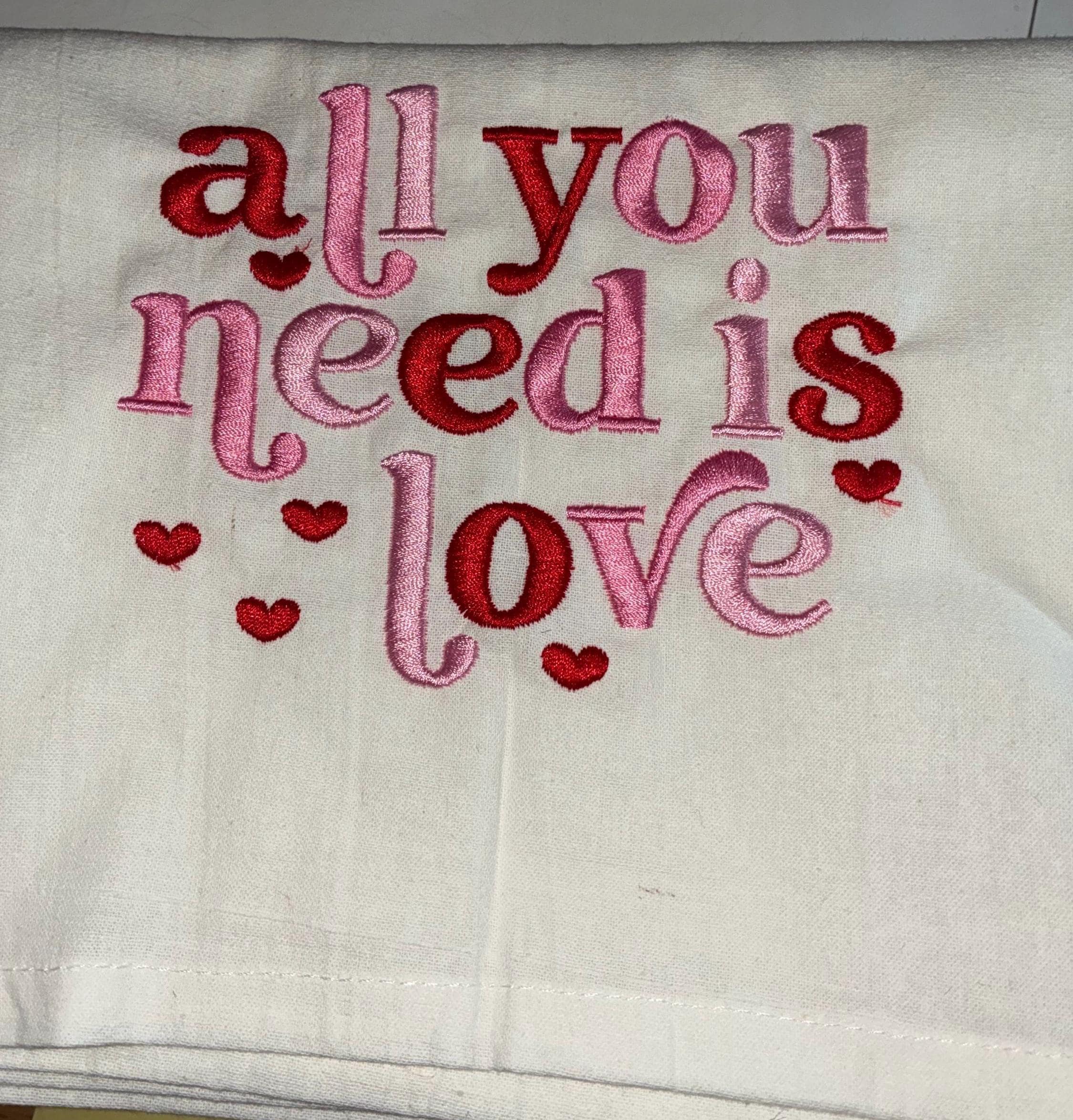 Kitchen Embroidered Tea Towel, Kitchen Table, Flour Sack Towel, kItchen Tea Towel, valentine towel, valentine gift