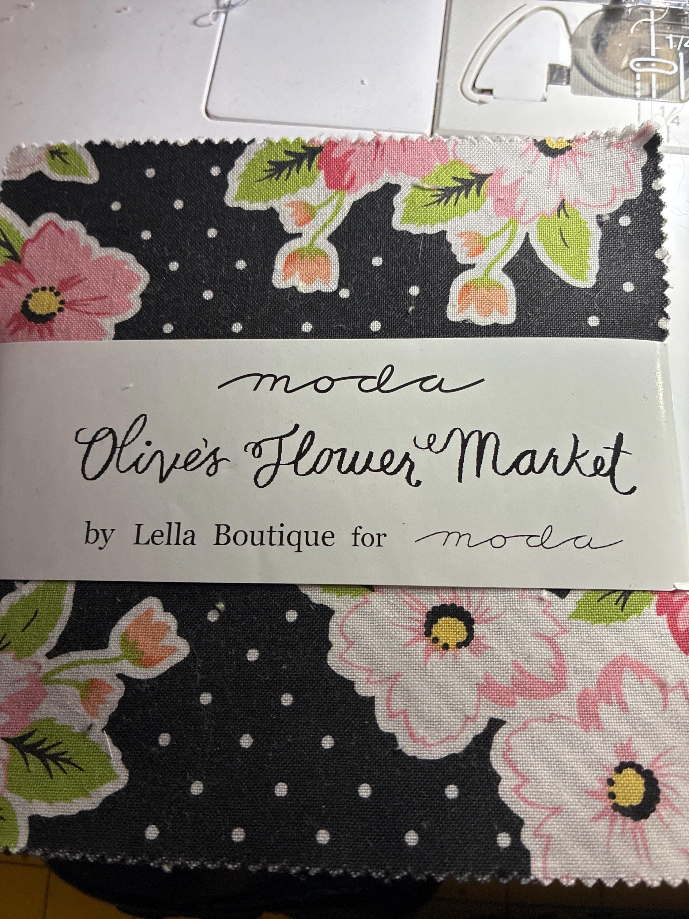 Ask a questionOlives Flower Market by Lella Boutique for Moda Charm Pack . 42 pieces of 5" precuts. Hard to Find, Out of print